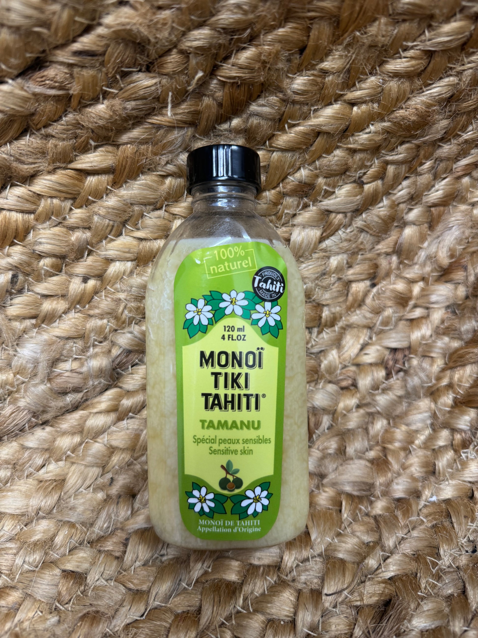 10% pure Tamanu oil in 90% base of Monoi Tiki Tahiti oil. Paraben-free for sensitive skin. No added fragrances - natural Tamanu.